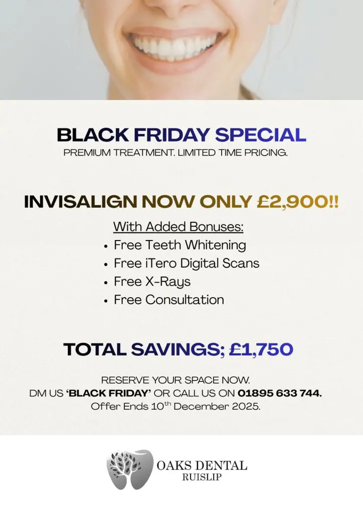 Welcome to Oaks Dental Ruislip– Oaks Dental is a highly-regarded private dental practice in the heart of Ruislip. The practice is situated just off a busy main high street with excellent footfall and transport links. We provide a full range of Dental services to patients across the Hillingdon area and beyond. The services offered include General and Cosmetic Dentistry, Invisalign tooth straightening, Children's dentist services, Teeth Whitening, and more. We also provide an emergency dentist service outside of surgery hours. The practice is a Denplan Excel accredited practice and is fully computerised with digital x-rays, intra-oral cameras, a high standard of finish and a friendly team.